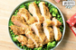 ●塩味ベースで味付けした鶏もも肉に、6種ハーブと2種スパイスをまぶして焼き上げたジューシーなチキン。